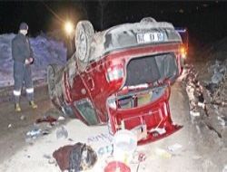 BAŞKENT’TE meydana gelen iki ayrı trafik kazasında ikisi ağır altı kişi yaralandı.  Çankaya İmrahor Caddesi’nde meydana gelen kazada 06 BK 316 plakalı otomobiliyle seyir halinde olan Selçuk T. buzlanan yolun kayganlaşması ve dikkatsizlik nedeniyle direksiyon hakimiyetini kaybetti. Kontrolden çıkan otomobil, yol kenarındaki tepeye çarptıktan sonra takla attı. Sürücünün yan tarafında oturan Tarkan G. ters dönen araçta sıkıştı. Kazayı gören vatandaşlar, durumu polis, sağlık ve itfaiye ekiplerine haberverdi. İtfaiye ve sağlık ekipleri tarafından sıkıştığı yerden çıkarılan Tarkan G.’nin olay yerinde kalbi durdu. Sağlık ekiplerinin yerinde müdahalesi ile tekrar yaşama döndürülen Tarkan G. ile sürücü Selçuk T. olay yerindeki ilk müdahalelerinin ardından hemen ambulanslarla Ankara Eğitim ve Araştırma Hastanesi’ne kaldırılarak tedavi altına alındı. Tedavi altına alınan Selçuk T.’nin durumunun iyi olduğu, Tarkan G.’nin ise yaşam mücadelesinin devam ettiği öğrenildi. Öte yandan ters dönen otomobilin parçaları yola savrulurken, araçta bulunun alkol şişeleri ise dikkat çekti. Polis, kazalarla ilgili soruşturma başlattı.