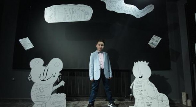 8.5 yaşındaki Enis Kıral, kendi karakterlerinden oluşan karikatür sergisini Ankaralıların beğenisine sundu.