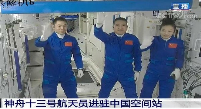 Shenzhou-13 uzay aracındaki taykonotlar Zhai Zhigang, Wang Yaping ve Ye Guangfu, uzay istasyonunun çekirdek modülüne girdi.