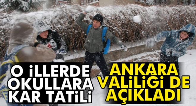 Son dakika! Ankara'da okullar tatil edildi. Milyonlarca öğrencinin beklediği kar tatili haberini valilik az önce açıkladı. Ankara'da yarın okullar tatil edildi. Ankara'da okullar tatil edildi.
