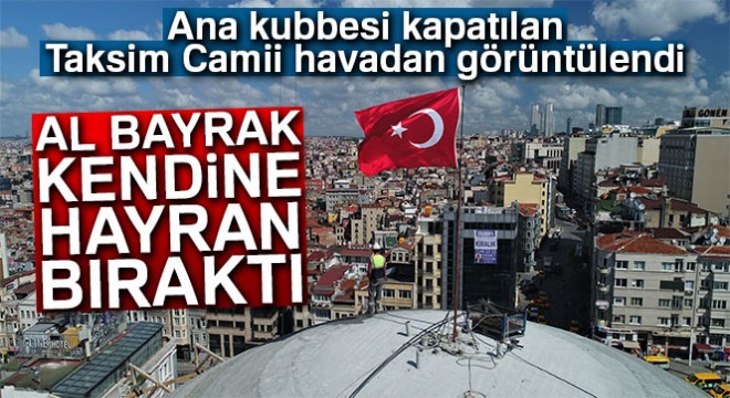 Ana kubbesi kapatılan Taksim Camii havadan görüntülendi. Türk bayrağının Taksim Camii'nin tepesine asılmasının ardından Al bayrağın kubbenin üzerinde dalgalanan görüntüsü kendine hayran bıraktı.Öte yandan Taksim Camii'nin tepesinde tek başına çalışan işçi ilginç görüntüler oluşturdu.