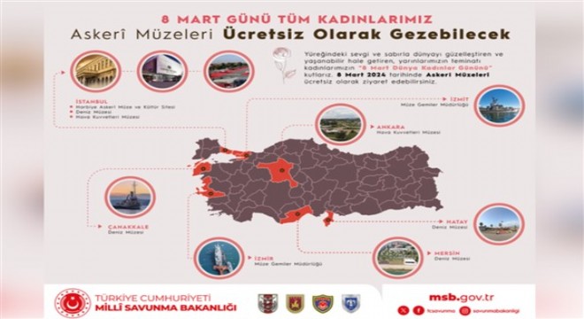 Milli Savunma Bakanlığı (MSB), 8 Mart Dünya Kadınlar Günü’nde askeri müzelerin kadınlara ücretsiz olacağını duyurdu.