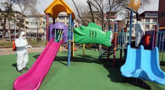 Yenimahalle Belediyesi Park ve Bahçeler Müdürlüğü ekipleri, koronavirüs sebebiyle ilçe genelinde tüm parklarda ve çocuk oyun alanlarında dezenfekte ve ilaçlama işlemlerini gerçekleştiriyor.