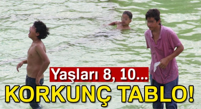 Adana'da poşete koydukları uçucu maddeyi süs havuzunda serinlerken çekmek isteyen çocuklar birbirini darp etti.