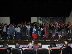 Gala gösterimi öncesinde çocuklara diş macunu, diş fırçası, süt ve