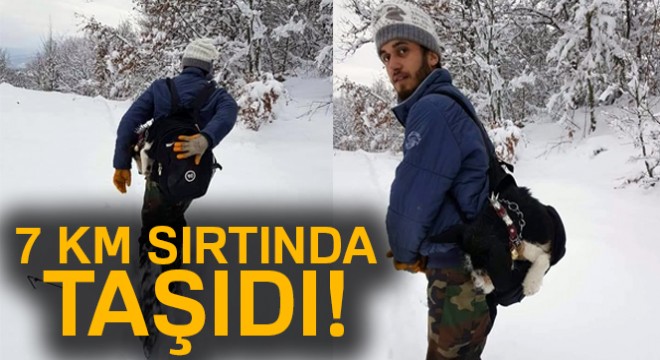Bolu’nun Mudurnu ilçesi Taşkesti beldesinde ikamet eden Cem Şahin, yanına köpeğini de alarak arkadaşlarıyla birlikte ormanlık alanda gezintiye çıktı. Gezi sırasında yarım metre kar üzerinde sahibi Şahin ile birlikte yürüyen köpek bir süre sonra rahatsızlandı. Şahin, köpeğinin yürüyemediğini görünce sırt çantasının içine koyarak bulundukları yere 7 kilometre uzaklıktaki veterinere kadar taşıdı. Veterinerde tedavi edilen Şahin’in köpeği sağlığına kavuştu.