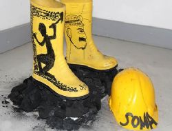 ANKARA / Çocuklar, geçtiğimiz ay Soma’da meydana gelen maden faciasında hayatını kaybeden madenciler anısına kömür, çizme ve baretten oluşan bir köşe oluşturdu. ANKARA /