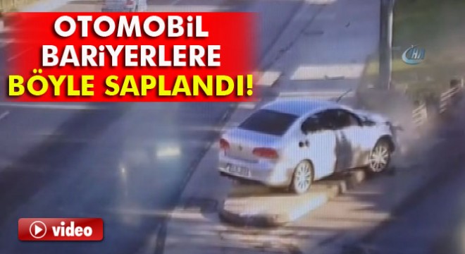 Piyalepaşa Bulvarı’nda kontrolden çıkan otomobilin bariyerlere ok gibi saplandığı anlar güvenlik kameralarına yansıdı.