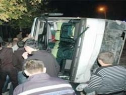 Servis aracı devrildi