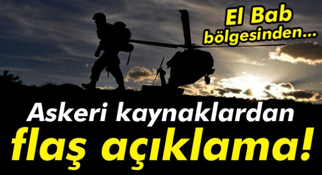 Askeri kaynaklar, TSK unsurlarının El Bab bölgesinden çekilme faaliyeti içinde olduğuna yönelik haberlerin gerçek dışı olduğunu açıkladı.