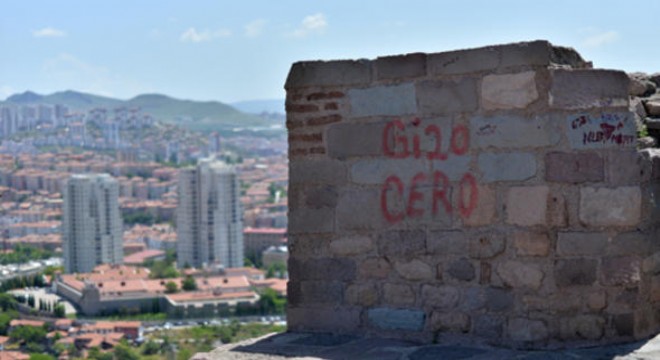 Surlara sprey boya ile yazılan yazılar arasında ‘Ne mutlu Türk’üm diyene’ ifadeleri dikkat çekiyor. Birçok yerde çiftlerin isimlerini duvarlara yazdıkları ve hatta kazıdıkları da göze çarpıyor. Bir başka yerde ise yine sprey boya ile Göktürk alfabesiyle ‘Türk’ yazıldığı gözden kaçmıyor. Seyir terasının alt kısmına doğru ilerlendiğinde ise binlerce yıllık tarihi surlarda yakılan ateşin duvarlara büyük zarar verdiği de görülüyor. Kentin tarihine sahip çıkılmadığını vurgulayan vatandaşlar, “Her seferinde aynı manzaraya şahit oluyoruz. Ankara Kalesi’nde güvenlik eksikliği var. Tarihi surlara zarar verilmesini engellemek için burada güvenlik görevlisi olması gerekiyor” dedi.