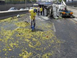 Devrilen araçtaki üzüm yola savrulunca İstanbul istikameti trafiğe kapandı.